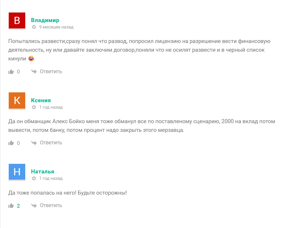 Отзывы об инвесторе Александре Дмитриевиче Бойкове
