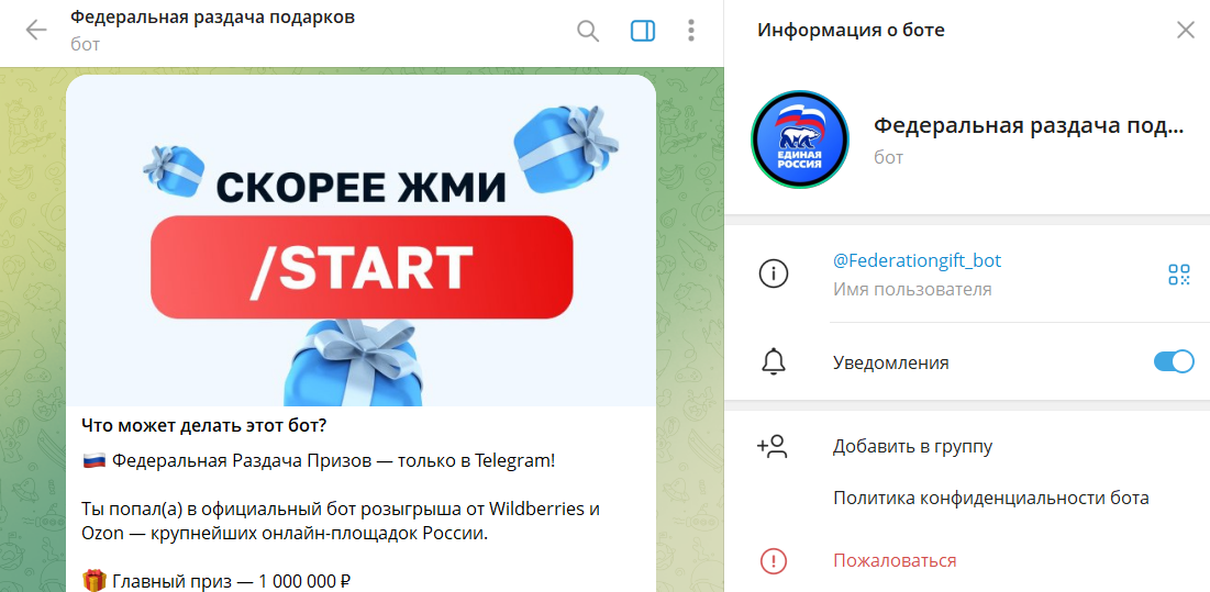 Бот Telegram Федеральная раздача подарков @Federationgift_bot – реальные отзывы