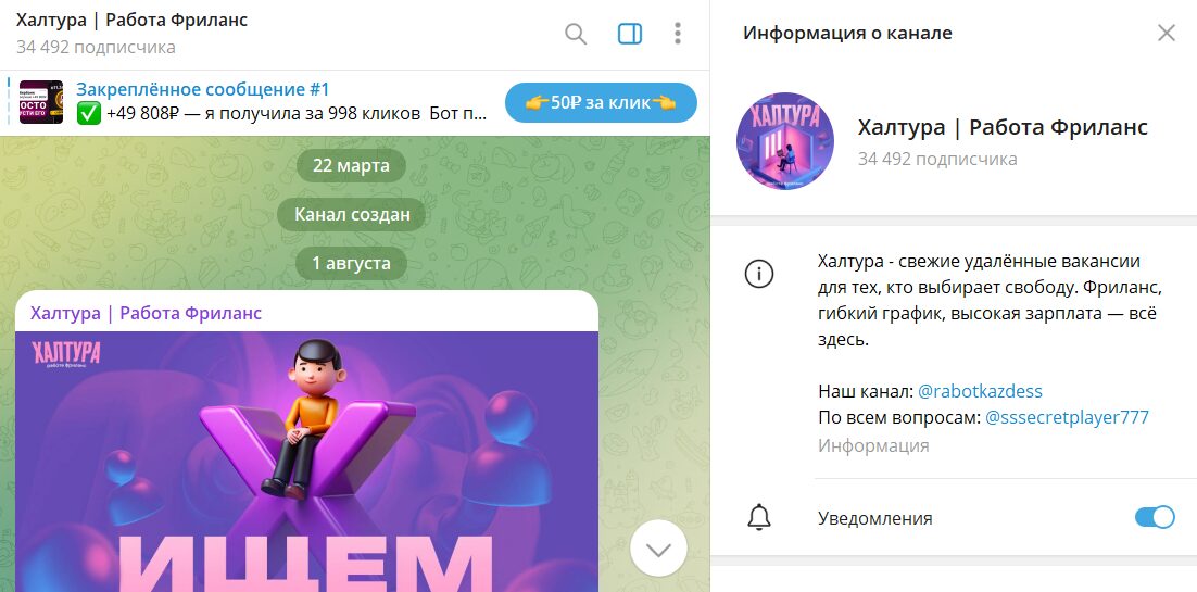 - канал Telegram Халтура | Работа Фриланс: +50YCT4WwwJY3MTI6