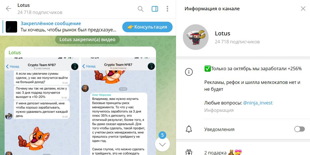 Канал Telegram Lotus @ninja_inform и @ninja_invest – отзывы о мошенниках