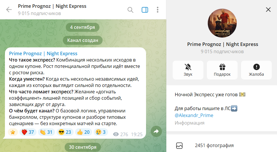 Отзывы о канале Prime Prognoz | Night Express в телеграме