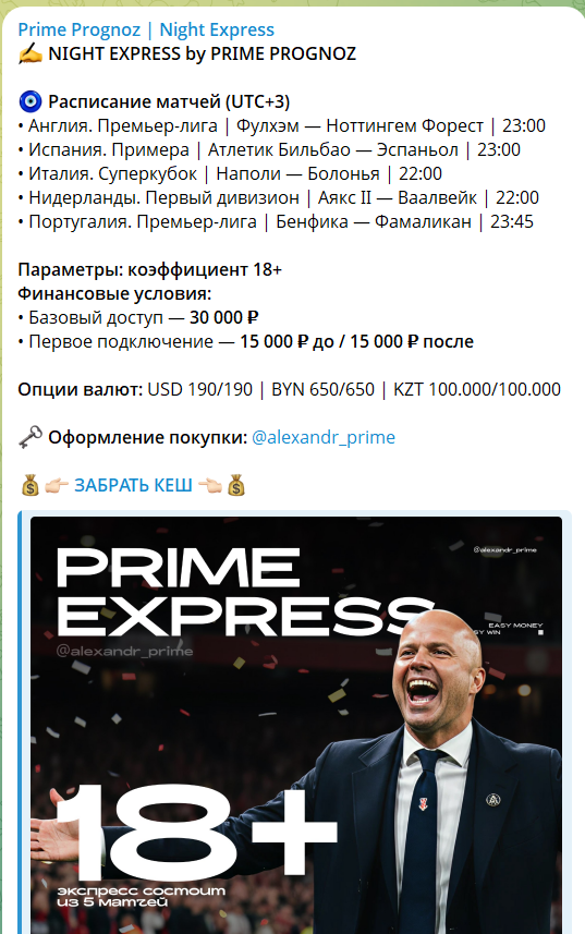 - канал Telegram Prime Prognoz | Night Express: +ofRZh8kCNoIzYmEy