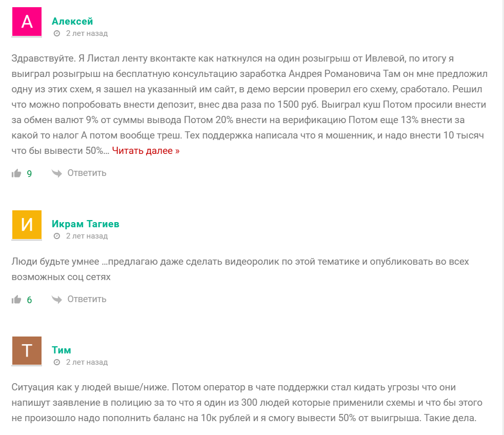Обращать внимание на высокую оценку в самом блоге не нужно, ведь у себя можно нарисовать все что угодно. Более объективные данные о ресурсе представлены на многих сторонних сайтах, в том числе и на нашем верификаторе (правда, о другом его канале). Основной поток жалоб на то, что люди потеряли свои деньги: