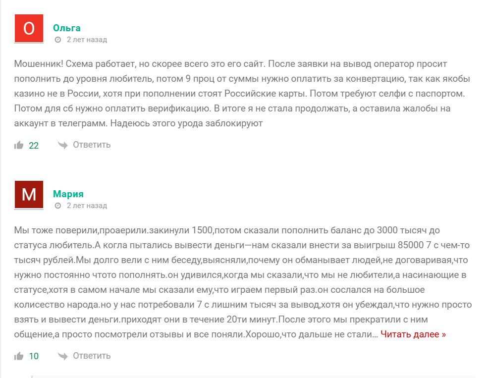 Подобные схемы эффективно работают на неопытных подписчиках, которые ничего не понимают в предложенной тематике. От таких сообществ лучше сразу отписываться, иначе финансовые убытки гарантированы, так как выиграть не удастся даже случайным образом, так как СКАМ казино принадлежит мошенникам.