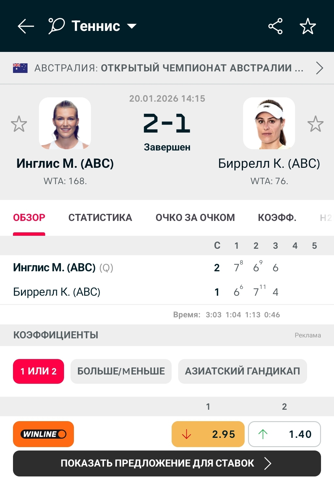 - Игрок заключает пари на тотал геймов в третьем сете меньше 10,5. Обычно в этот момент коэффициент на такой исход не менее 2,00.