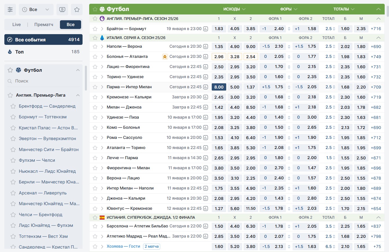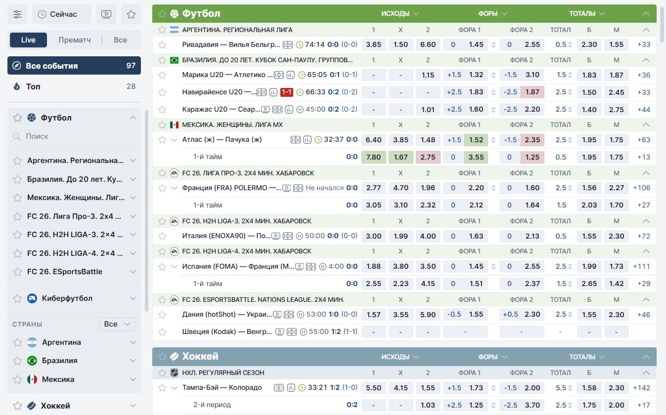 Они есть везде. Необходимо открыть сайт букмекера, а затем выбрать матч, в котором участвуют фаворит и аутсайдер. Но стоит обращать внимание не только на размер коэффициента, но и на состояние команд, а также иные факторы, влияющие на исход игры.