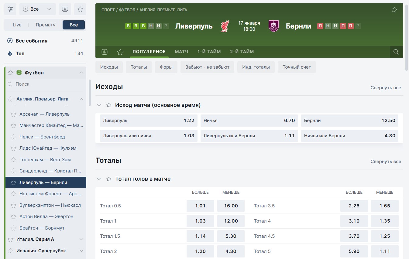 5. На поле встретились команды, одна из которых много забивает, а другая пропускает. В футболе и ряде других видов спорта это позволит беттору поставить на индивидуальный тотал.