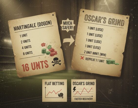 Если сравнивать метод Оскара Грайнда с системой Мартингейла («догоном»), то Грайнд выглядит гораздо безопаснее. В «догоне» после 5-го проигрыша ставки становятся очень крупными. Здесь размер риска увеличивается только тогда, когда игрок уже начал побеждать, то есть использует деньги букмекера, а не только свои.