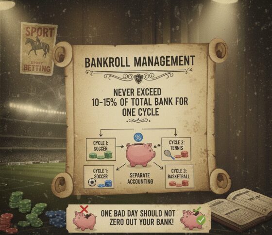 Метод подразумевает, что можно одновременно вести 2-3 цикла на разные виды спорта, но каждый из них должен иметь обособленный учет. Один неудачный день не должен обнулить игровой банк, если беттор грамотно распределил лимиты.