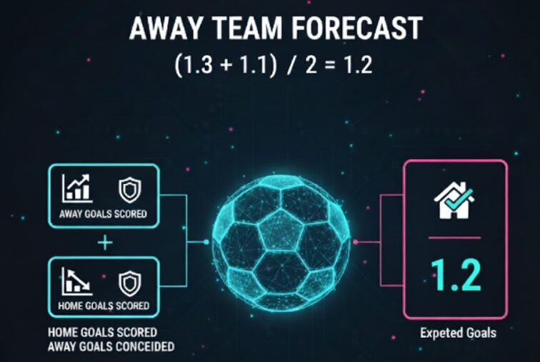 Формула: (забитые голы гостей + пропущенные голы хозяев) / 2