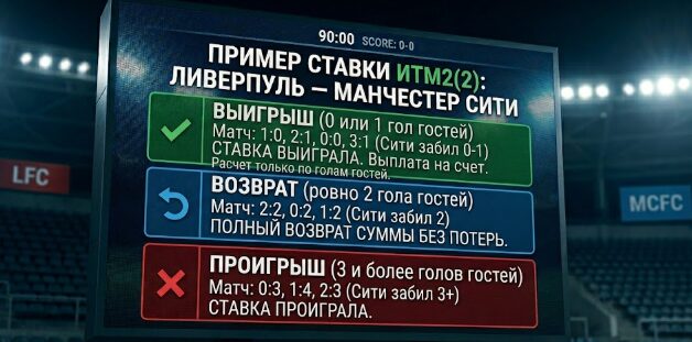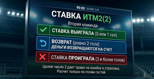 В букмекерских линиях, помимо привычных пари на победителя, представлено много других вариантов. Популярный выбор – это ставка на количество голов или очков конкретной команды. К примеру, прогноз на то, что вторая команда забьет меньше двух голов. В лини букмекера обозначается ИТМ2 – что это в ставках, стоит разобраться. Эта позиция привлекает возможностью получить возврат денег, если выбранный клуб отличится ровно дважды. По сравнению с дробными аналогами, у такого прогноза риск проиграть намного ниже.
