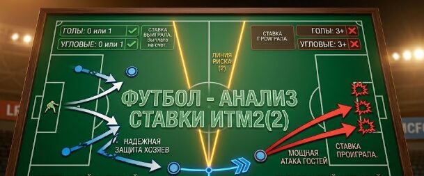 В основе пари лежит прогноз на слабую результативность гостей. Когда оформляется ставка на индивидуальный тотал ИТМ2(2), учитываются только голы, которые смогла забить вторая команда. Любое результативное действие первой команды не влияет на исход.