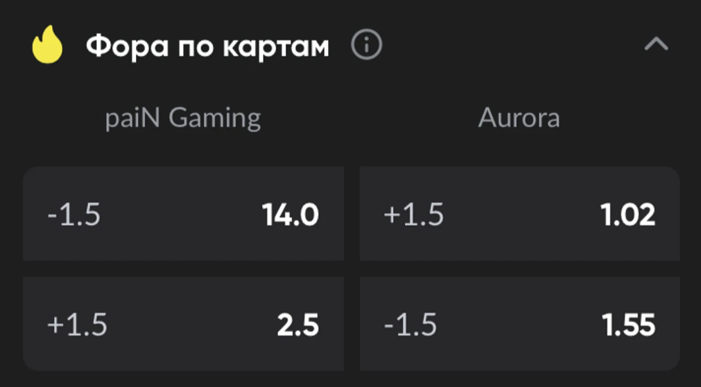 В отличие от классического спорта, в киберспорте фора часто привязана не к конечному результату матча, а к конкретным картам или отрезкам игры.